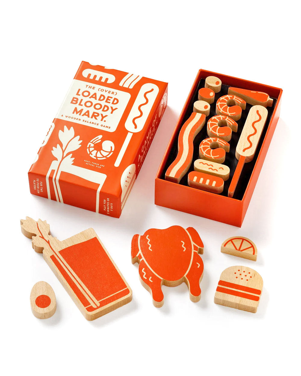 Players complete by taking turns adding increasing ridiculous garnishes on top of a Bloody Mary-shaped starting block as they try not to be the one that knocks it all down.