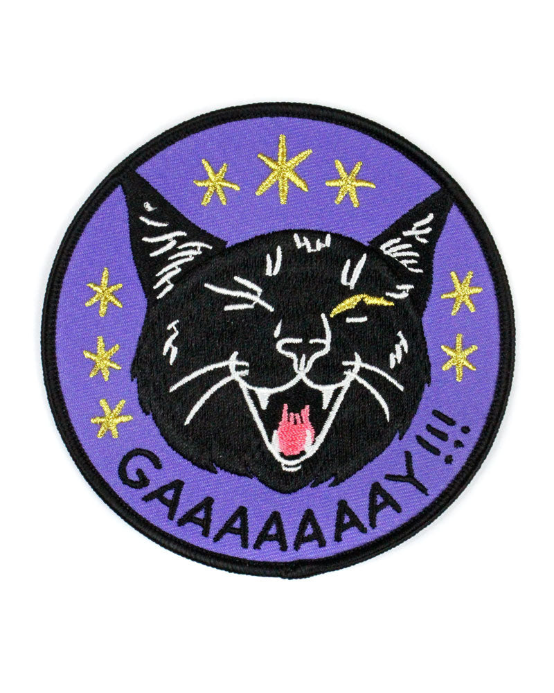 Worried someone might think you're straight? Attach this gay cat to your patch so everyone knows you're loudly and proudly gay! Great for queer cat lovers, and witch-centric folx.