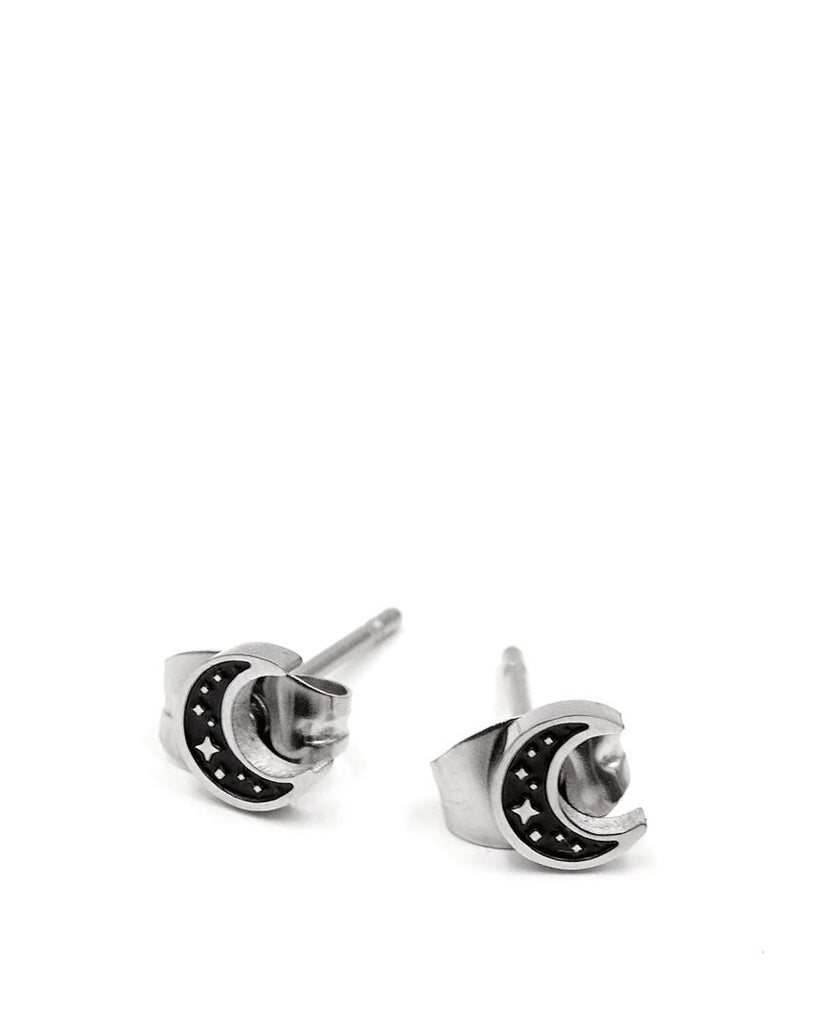 Black crescent moon design with star detail inside—these are super tiny stud earrings that make 'em wearable every day.