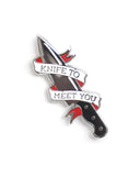 You're looking sharp! Knife ...I mean. ...nice to meet you. A kitschy gift for horror fans or chefs alike.