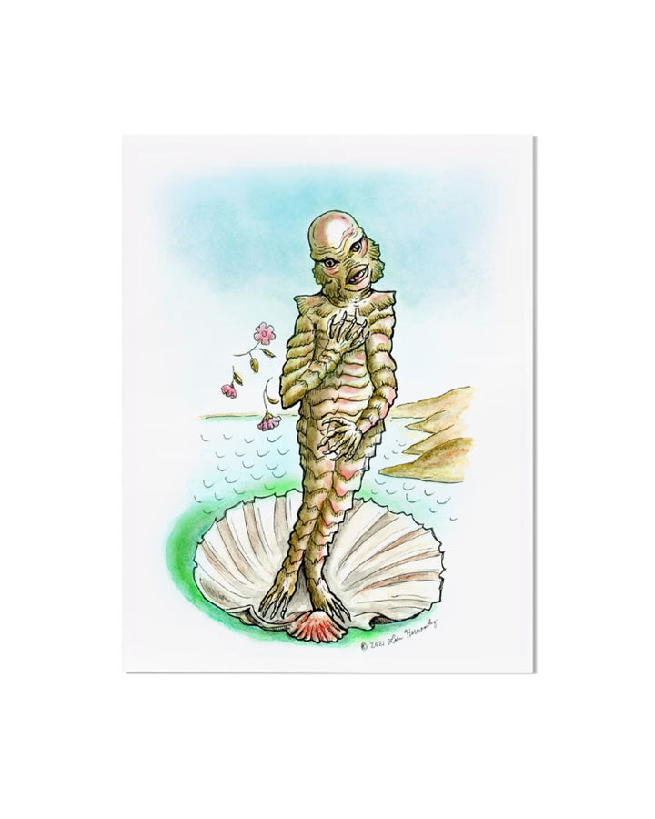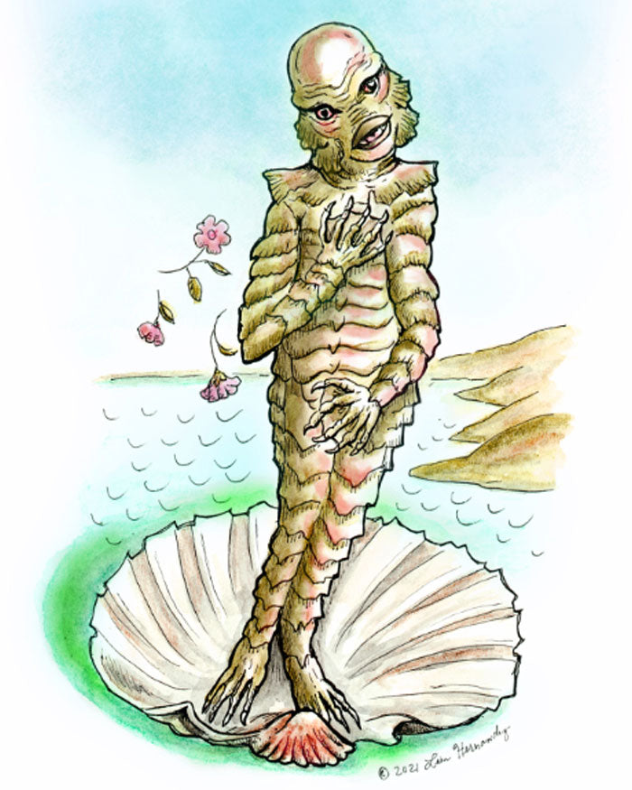 A more creature-ified version of the classic painting “Birth of Venus” —this one focusing on a real beauty coming out of the water (or lagoon)!