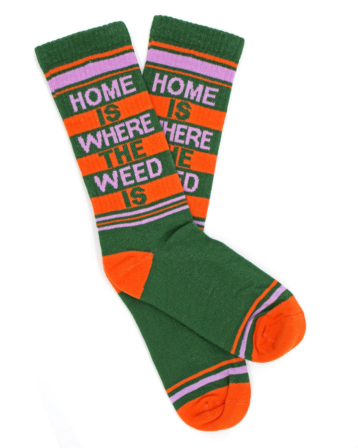 . Stay home and get high in these weed-colored socks (the orange and lilac is when you're really high).