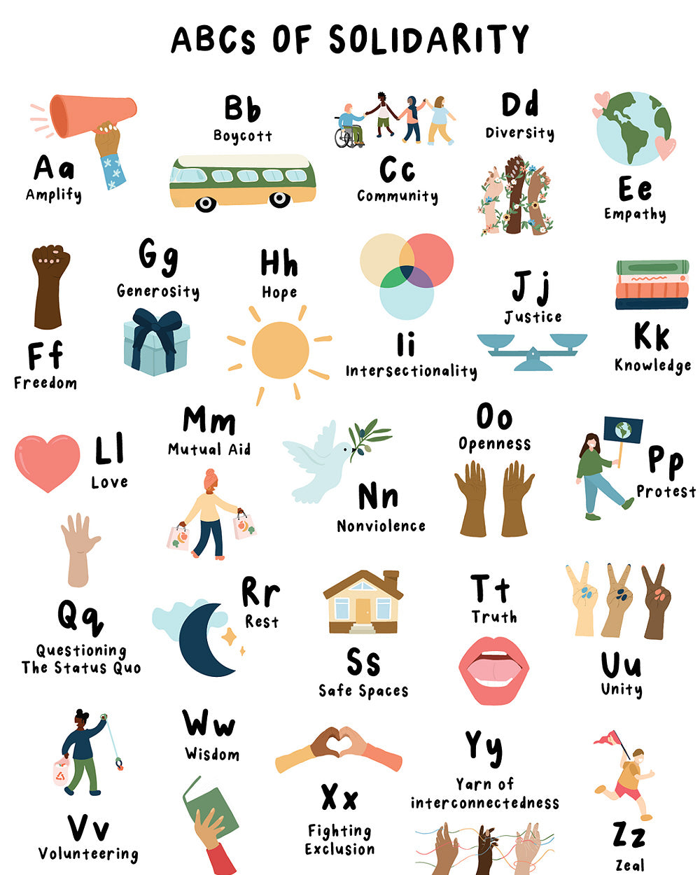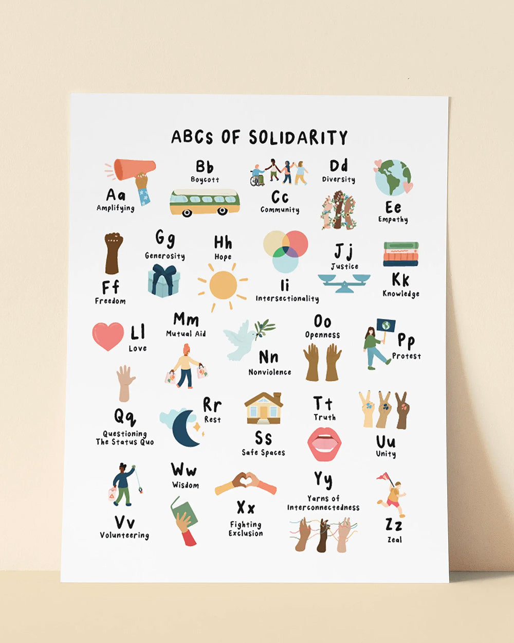 Impresión artística del abecedario de la solidaridad (16" x 20")