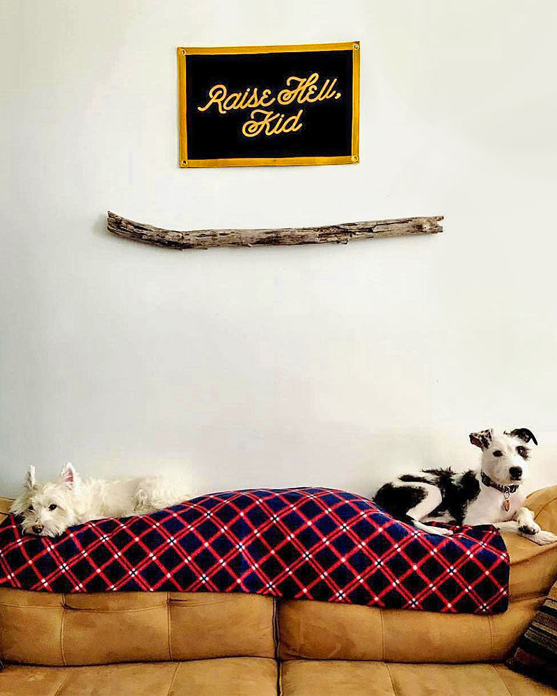 Bandera de fieltro con la frase "Arrasa el infierno, niño"