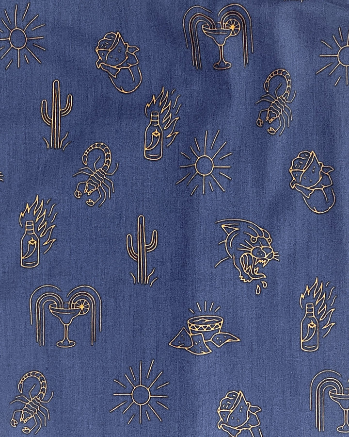 This cut-n-sew button-up looks pretty standard, until you gets up close! The casual shirt collared shirt features burritos, cacti, margaritas, and our other favorite southwestern foods. Whether you’re buttoning it to the top or dressing it down with a graphic tee, you’ll stay comfy and cool all day long in this super-soft cotton blend shirt. A perfect piece for warm weather.