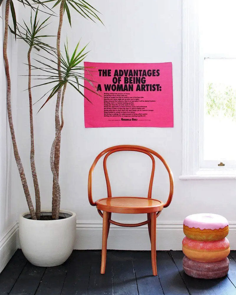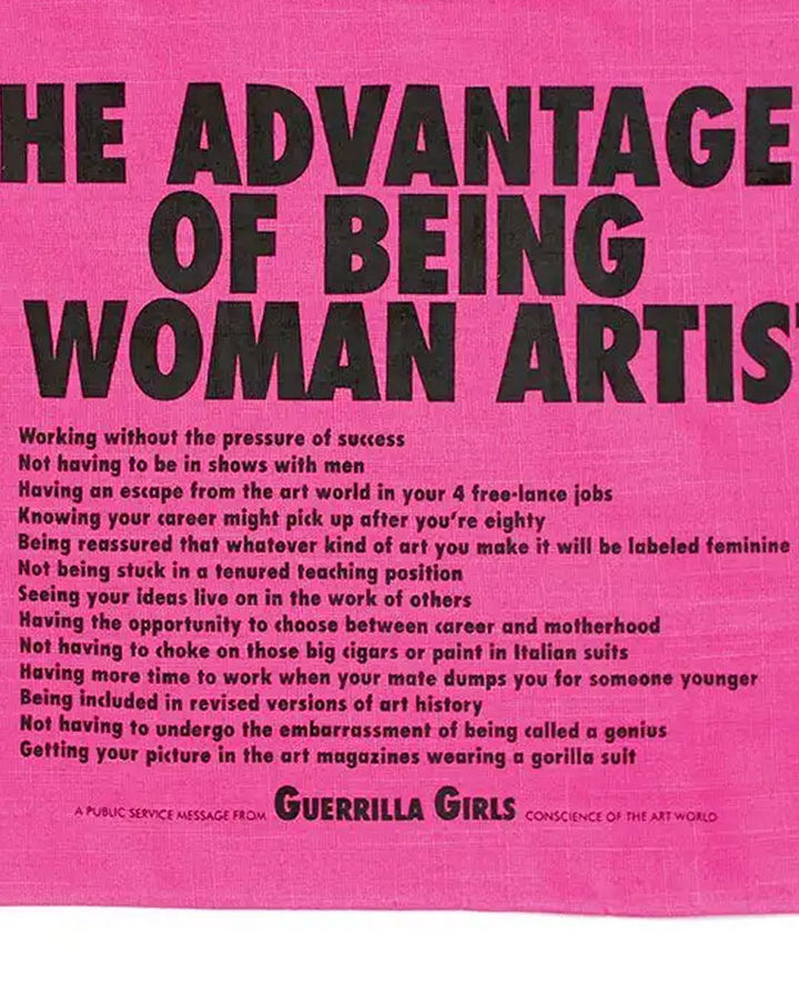 Originalmente un cartel que apareció en la ciudad de Nueva York en 1988 , este mensaje de servicio público ahora se puede colgar en su hogar como motivación diaria. Las creadoras, Guerrilla Girls, son un grupo de artistas anónimos que usan máscaras de gorila en público y usan hechos, humor e imágenes escandalosas para denunciar la discriminación y la corrupción en la política, la cultura pop, el cine y el arte.