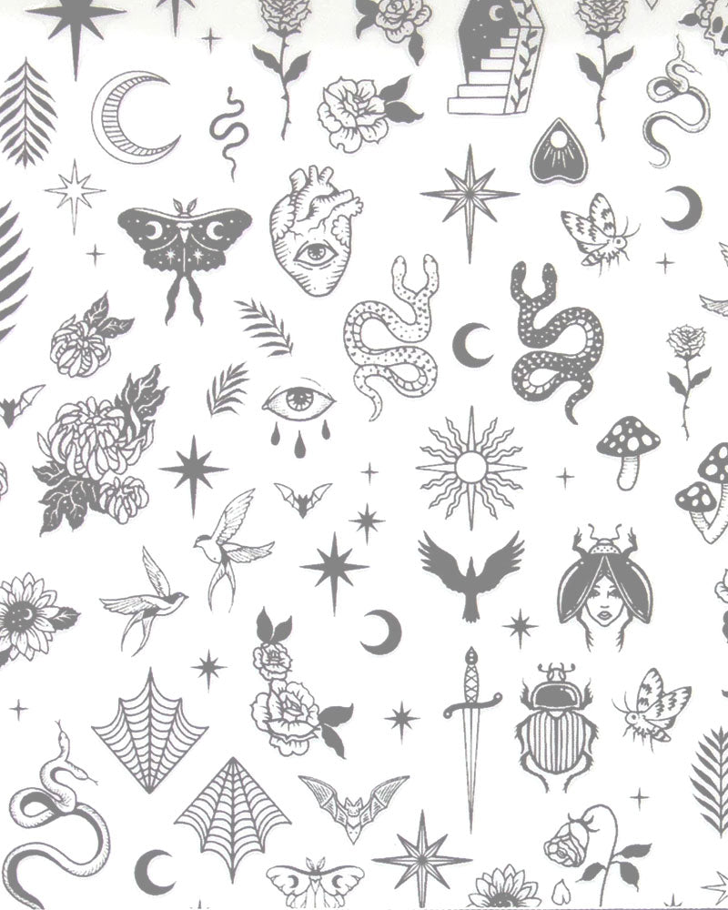 ¡Añade un poco de magia a tu manicura! Diseños místicos y de brujas que incluyen polillas, serpientes, flores, hongos, estrellas, murciélagos, telarañas, calaveras y muchos más hacen que estas pegatinas para uñas sean versátiles para muchos estados de ánimo y estilos.