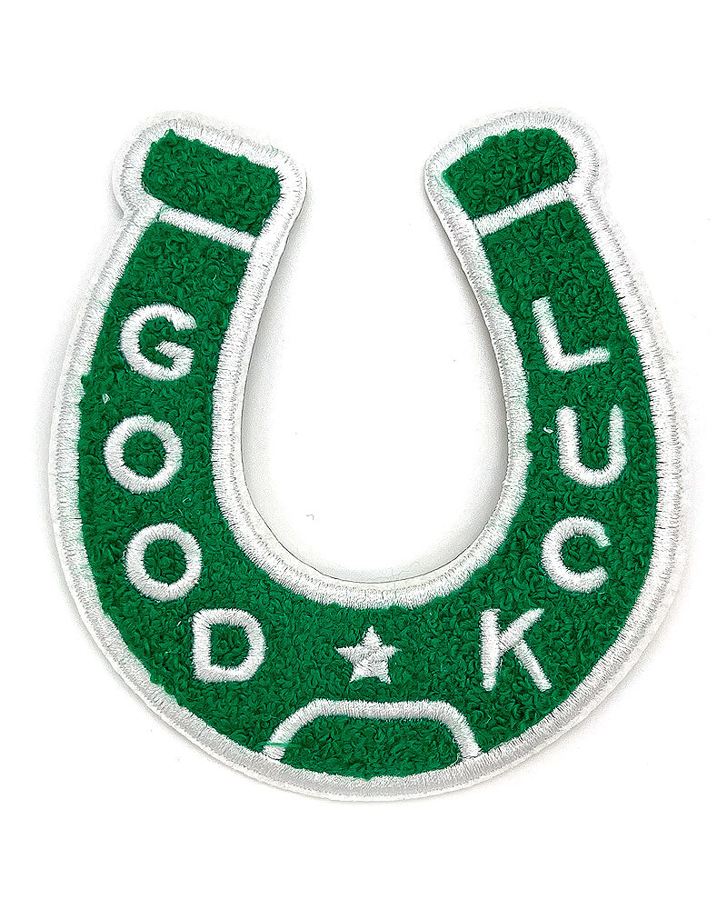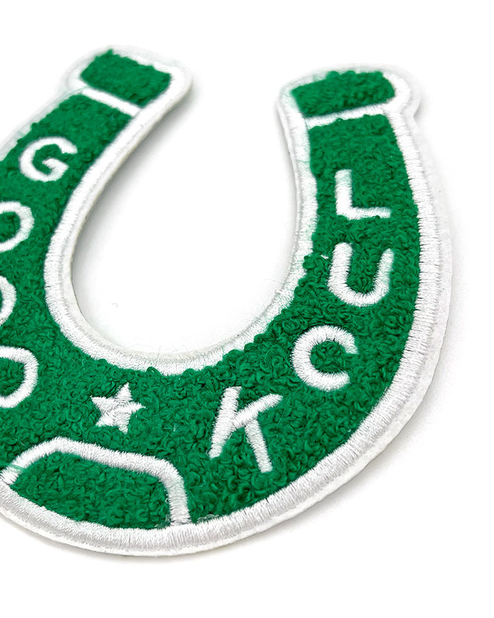 Parche de chenilla con forma de herradura de la buena suerte, color verde