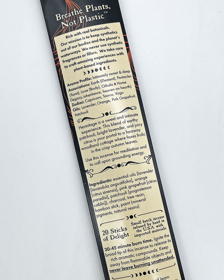 Incienso Hermitage: pachulí, lavanda y cítricos (20 unidades)
