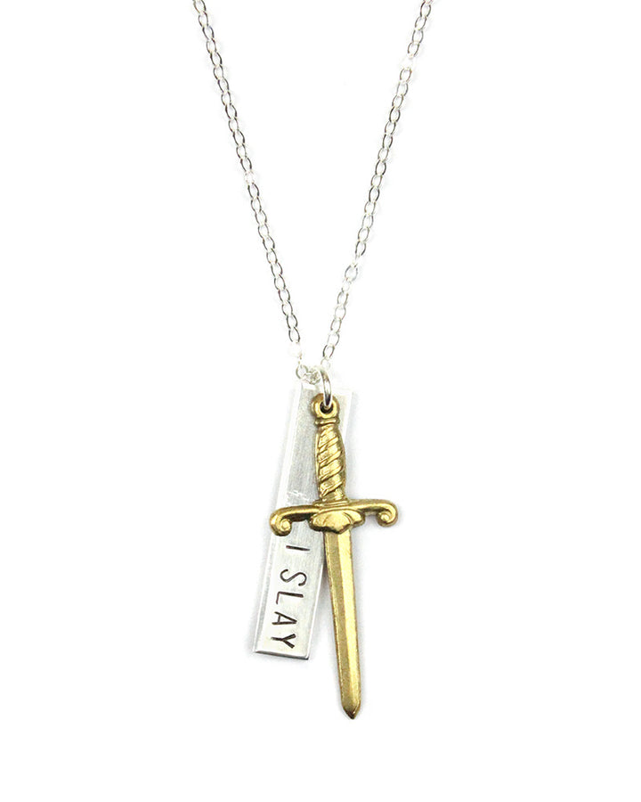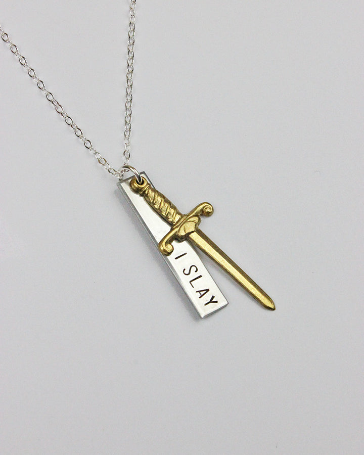 Empodérate a matar todo el día con este poderoso diseño de espada alrededor de tu cuello. Desde Buffy hasta Beyoncé, este collar es ideal para personas trabajadoras y emprendedoras, o simplemente para personas que buscan un poco de encanto medieval.