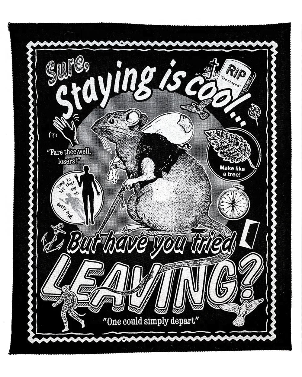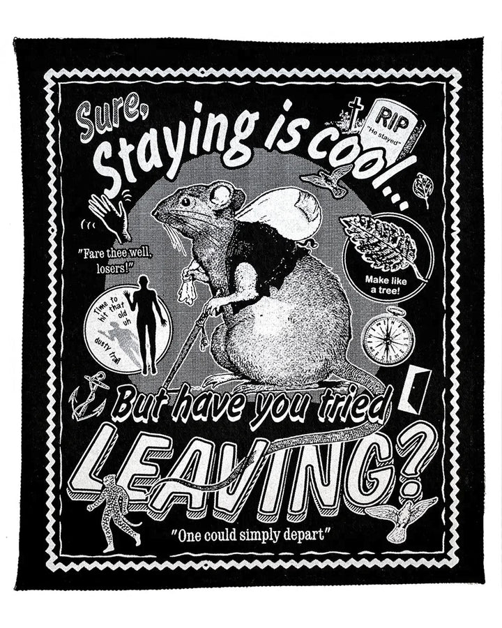 Cuando las cosas se ponen difíciles, los duros se van. Se van. Se desvanecen. Celebra el acto de partir con este hermoso parche para la espalda hecho a mano. Tiene una rata y todas las palabras que necesitas para decirle al mundo que te encantan las partidas.