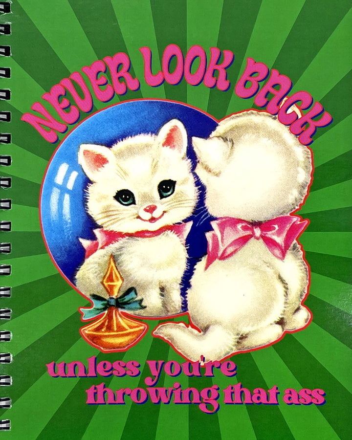 ¡Nunca mires atrás, a menos que estés haciendo ese trabajo! Escucha a este gatito remilgado en el espejo. Este es el cuaderno perfecto para escribir todos tus pensamientos cuando no puedes arremeter contra la gente en la vida real. Cuenta con papel de alta calidad para tomar notas, llevar un diario o simplemente decir tonterías.