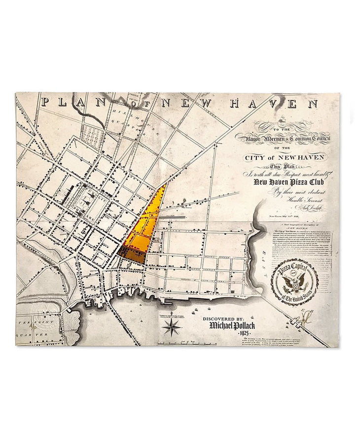 New Haven pizza is quickly being discovered by the rest of the world. However, this is something locals have known for forever. This old school map of New Haven, CT highlights a pizza slice in the roadways around Wooster Street and State Street that would become the same area as the epicenter of apizza.