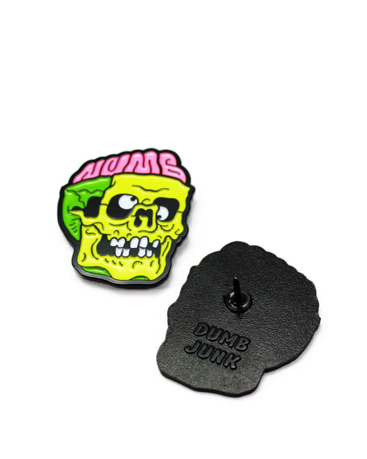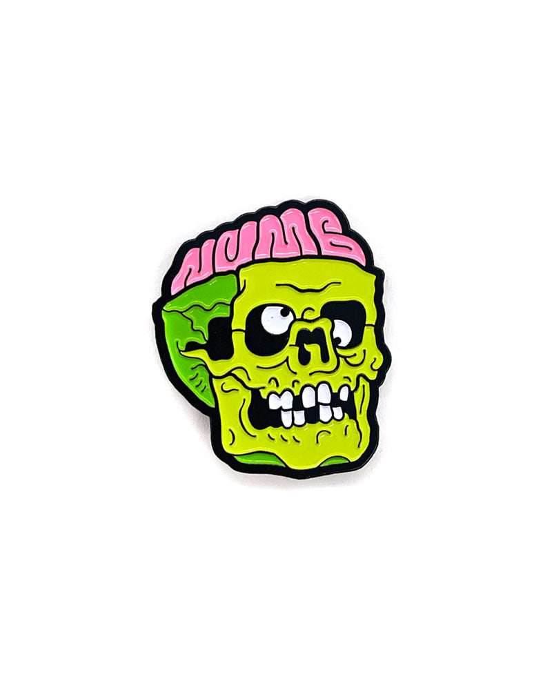 This gnarly-looking dimwit ain't too bright, but his colors sure are. A fun and colorful pin for any zombie horror fan.