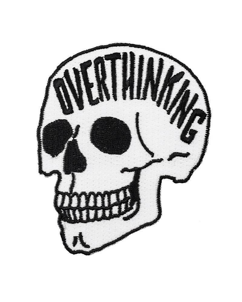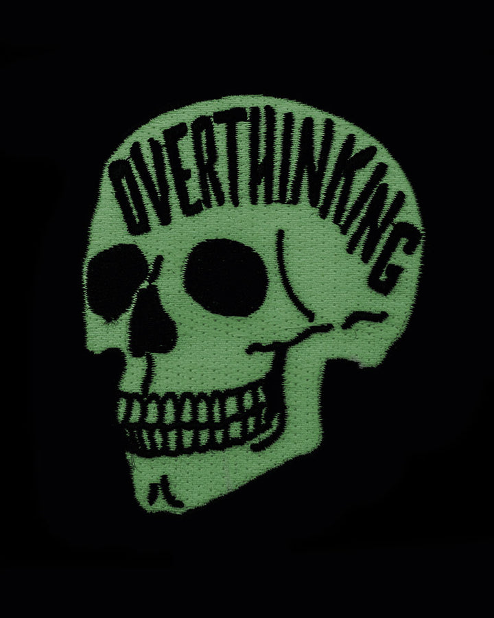 Parche de calavera que brilla en la oscuridad y que dice "Overthinking"