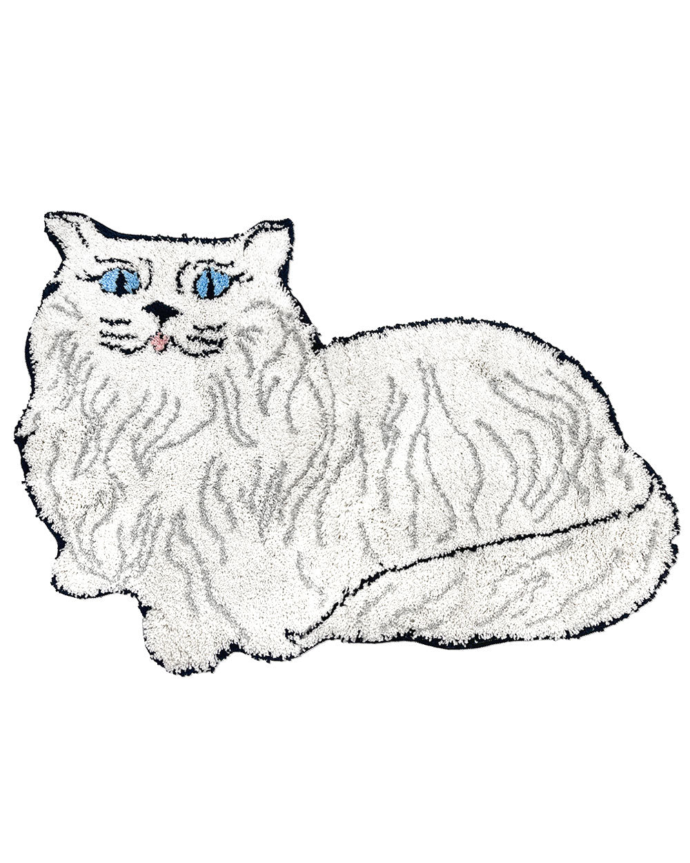 Esta alfombra peluda tiene el tamaño perfecto para muchas áreas: entrada, baño o incluso para colgar en una pared o usarla como mueble decorativo. ¡Este gato está disponible para adopción y quiere estar en tu casa o departamento!