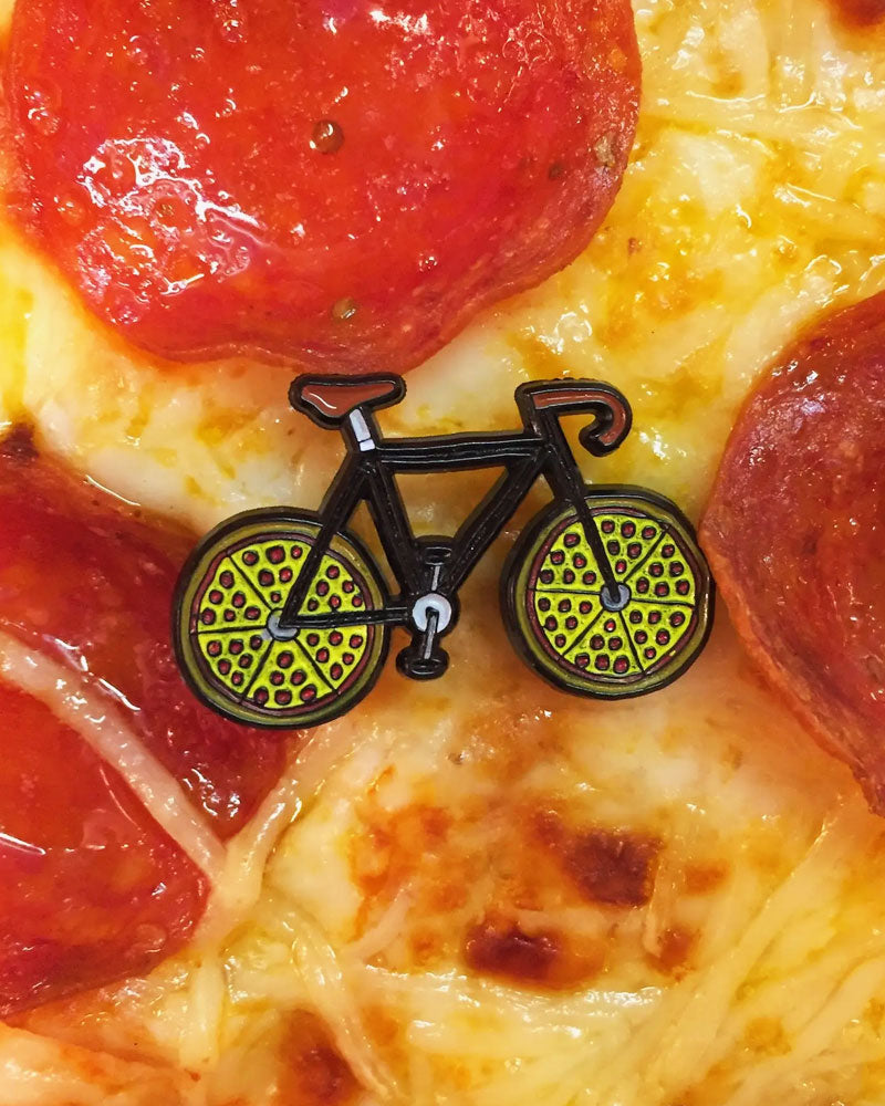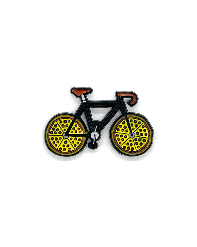 Rolling into town with the cheesy wheels! Great gift for lovers of pizza and biking.
