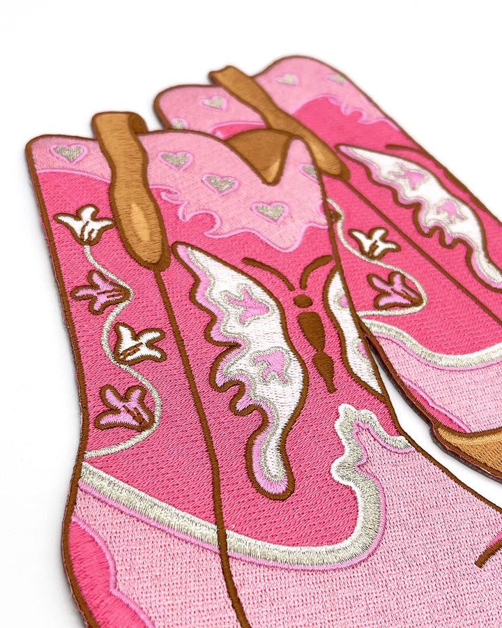 Estas botas rosas, femeninas y divertidas, con corazones, mariposas y flores transmiten vibraciones de princesa y caballo.