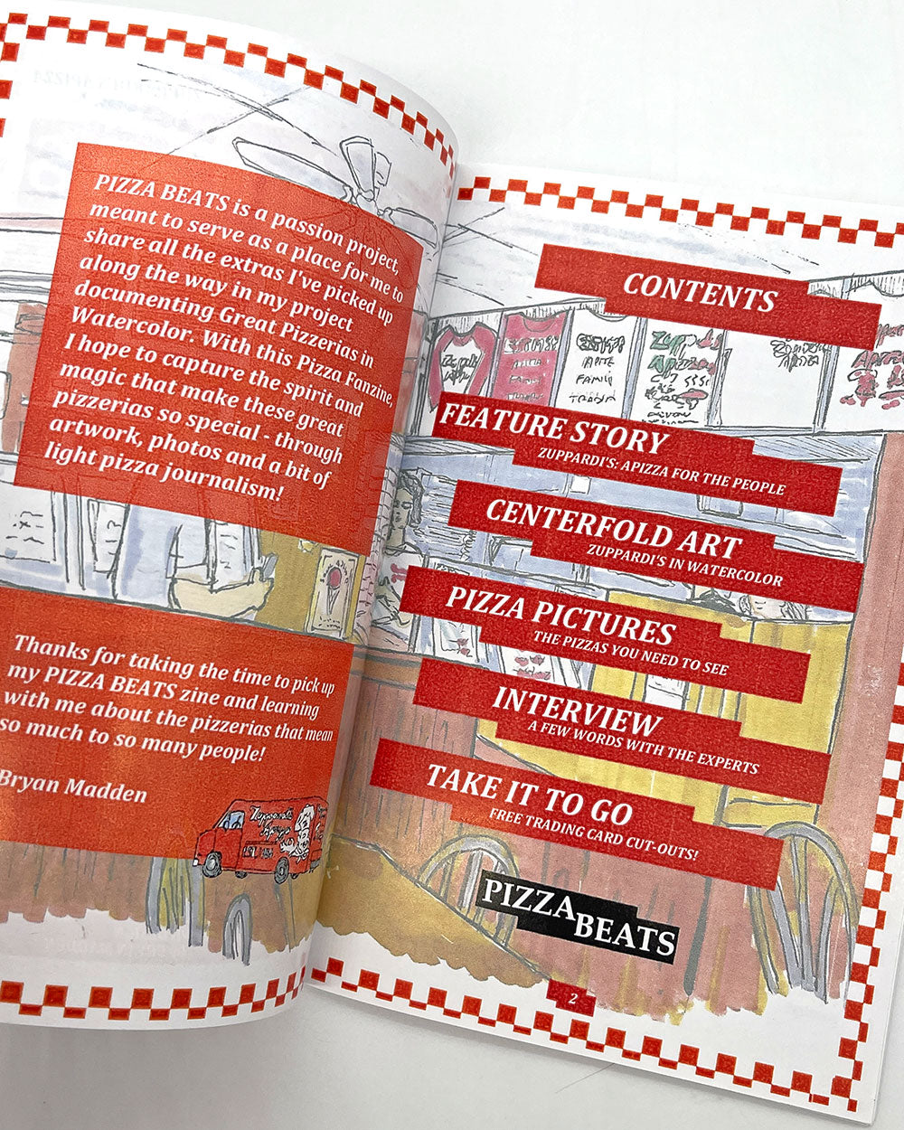 PIZZA BEATS es una revista de fans dedicada a las pizzas que destaca a un pizzero diferente en cada número. Con ilustraciones originales, artículos, citas, fotos y opiniones sobre la buena pizza, ¡PIZZA BEATS es una publicación para los amantes de la pizza!