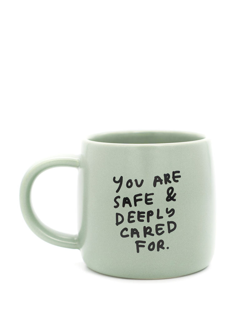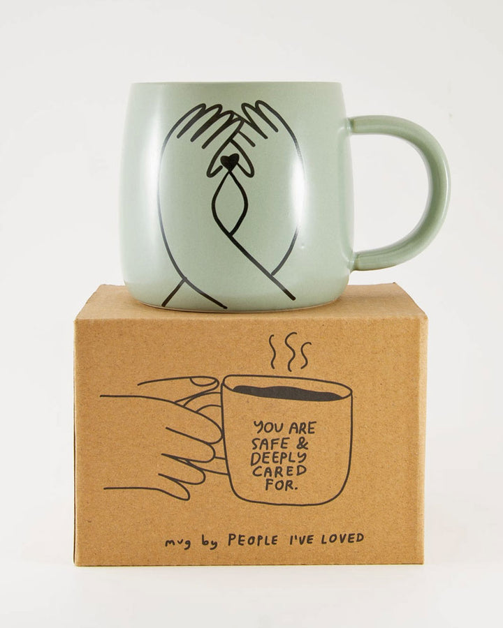 Estás a salvo y te quiero profundamente. Un abrazo sentimental y una mano para sostener en forma de taza.