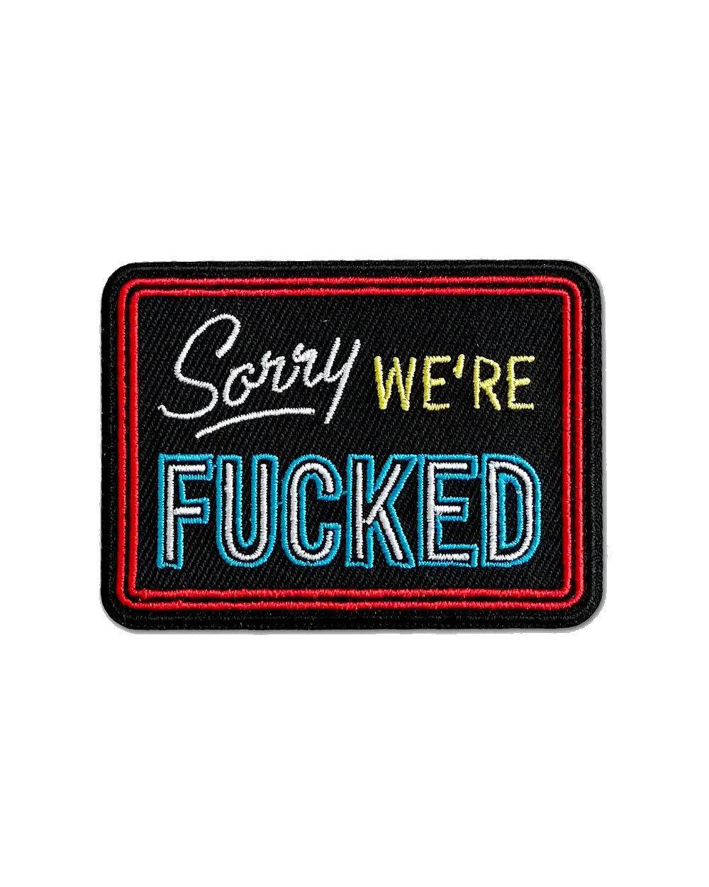 Este parche, que presenta un diseño estilo letrero de neón, captura a la perfección el estado actual de... bueno, de todo. Desde la economía hasta el clima, es la declaración pública definitiva de que todos estamos un poco jodidos. Perfecto para agregar un toque de humor negro a tu guardarropa.