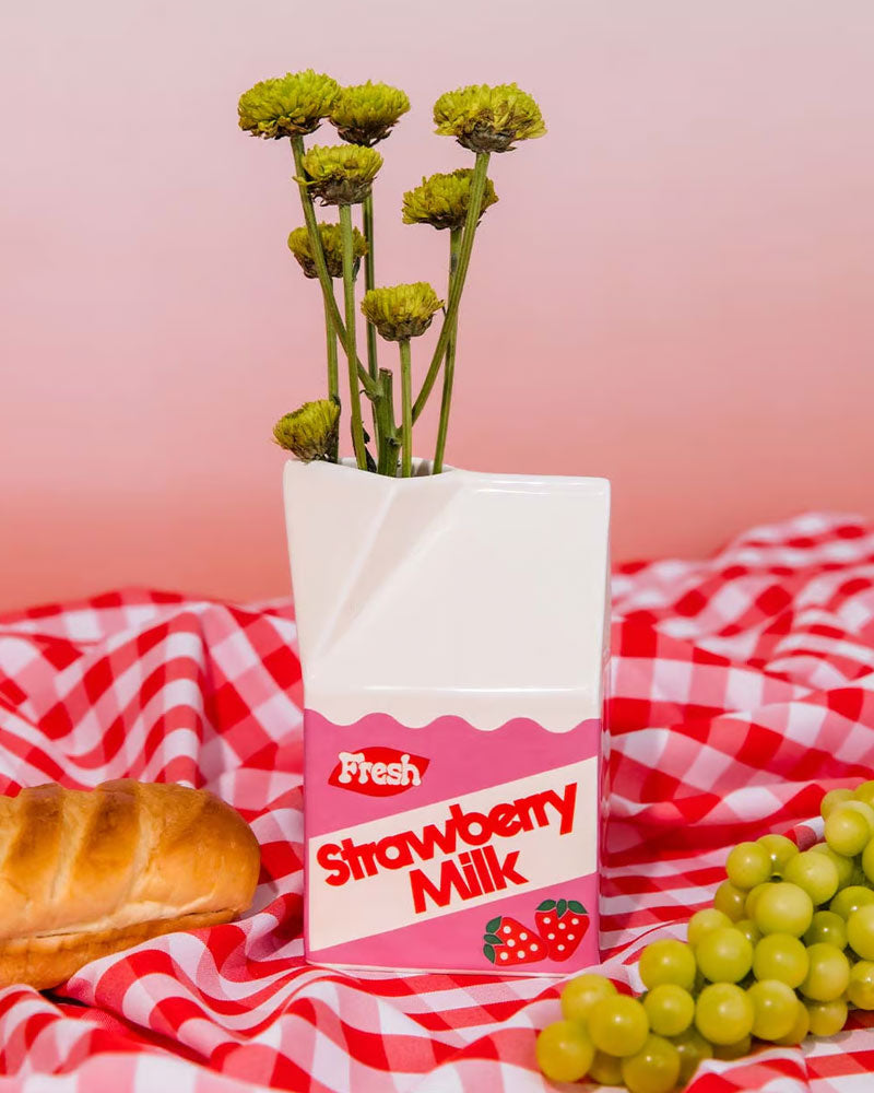¿Un secreto poco conocido? A las flores les encanta la leche. Bueno, en realidad les encanta este pequeño florero que parece un cartón de leche de fresa de la vieja escuela. Con un diseño retro en los cuatro lados, seguramente alegrará cualquier cocina o mesita de noche. (¿No te gustan las flores? ¡Guarda tus bolígrafos y lápices!)