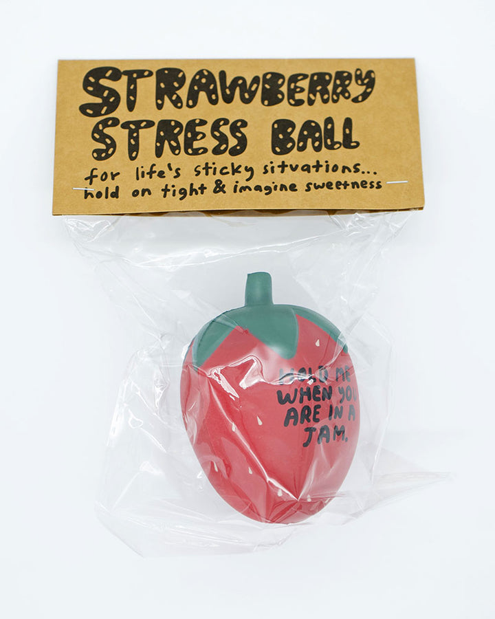 ¡Sujeta esta pelota antiestrés de fresa cuando estés en apuros! Sujétala fuerte y aprieta para que se llene de dulzura.