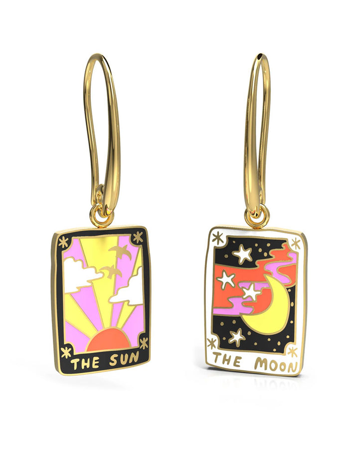 Pendientes de aro colgantes con la carta del Tarot del Sol y la Luna