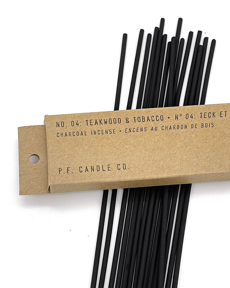 Las varillas de incienso a base de carbón están perfumadas por el equipo de PF Candle en Los Ángeles, que lleva más de 15 años en el mercado. El incienso transforma rápidamente una habitación, ya que el humo eleva lentamente el espacio mientras que los aromas característicos perduran durante horas, incluso después de apagarse.