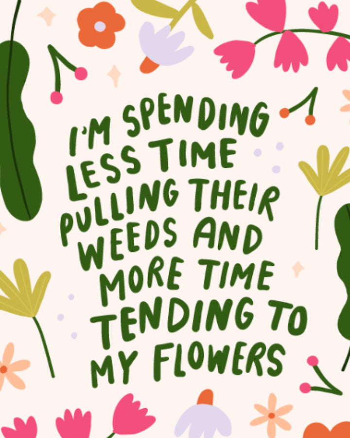 Estoy pasando menos tiempo quitando las malas hierbas y más tiempo cuidando mis flores.
