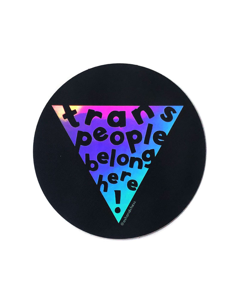 Les personnes transgenres ont leur place ici ! Autocollant holographique