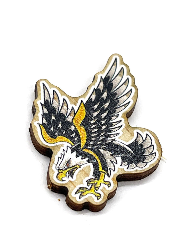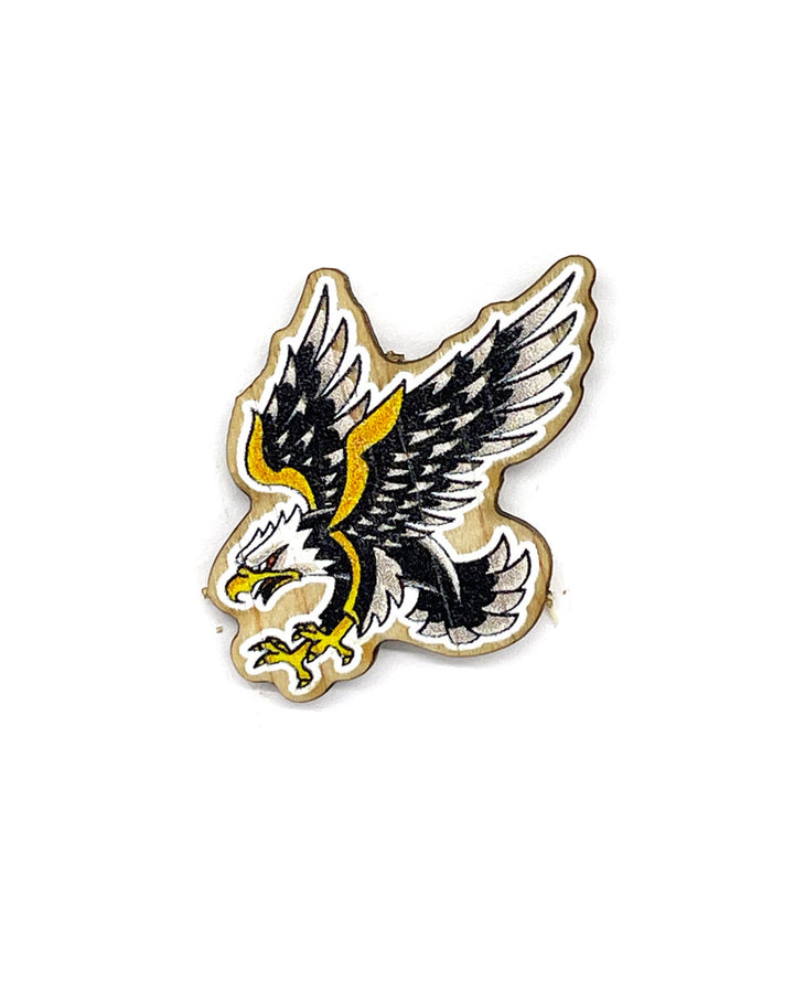 Inspired by traditional tattoo artwork, this classic-looking pin is modern as it's made from sustainable wood! Lightweight, and better for the environment—add some flair to your hat, bag, or jacket.