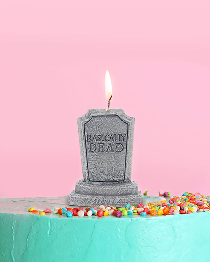 Vous n'êtes pas très content de vieillir ? Vous voulez faire une blague à votre plus vieil ami ? Vous allez mourir de rire avec cette bougie d'anniversaire morbidement amusante . Il suffit de la déposer sur le dessus du gâteau.
