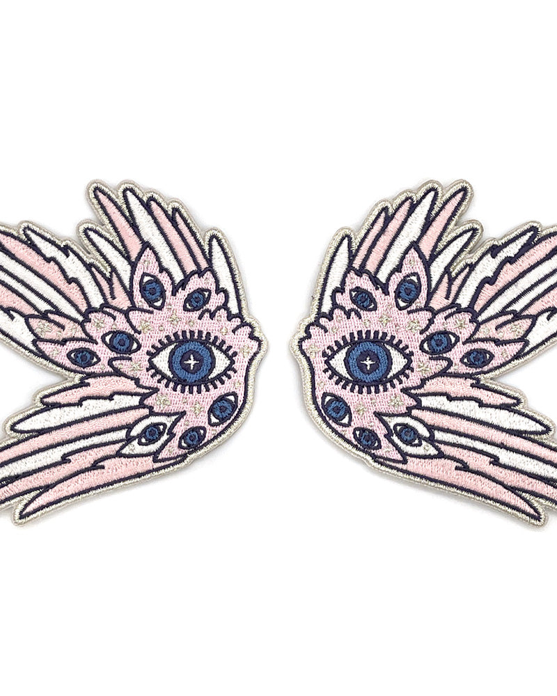 Savez-vous à quoi les anges sont *réellement* censés ressembler ? Eh bien, voilà ! Ce patch d'ange fidèle à la Bible est finement détaillé avec des yeux et des étoiles scintillantes sur des ailes rose pastel délicates. Inspiré des anges bibliques tels que Séraphin et Ophanim, il est parfait pour ajouter une touche céleste et angélique (et étrange) à votre veste.