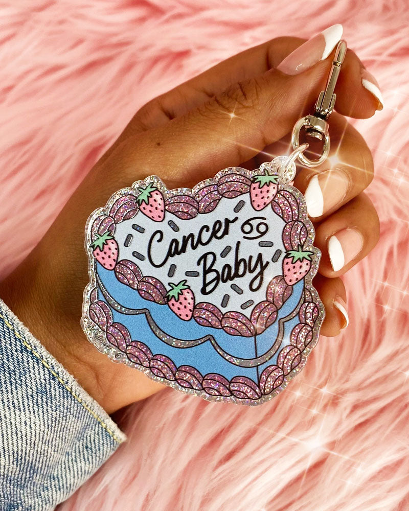 Porte-clés avec breloque en forme de gâteau du zodiaque Cancer