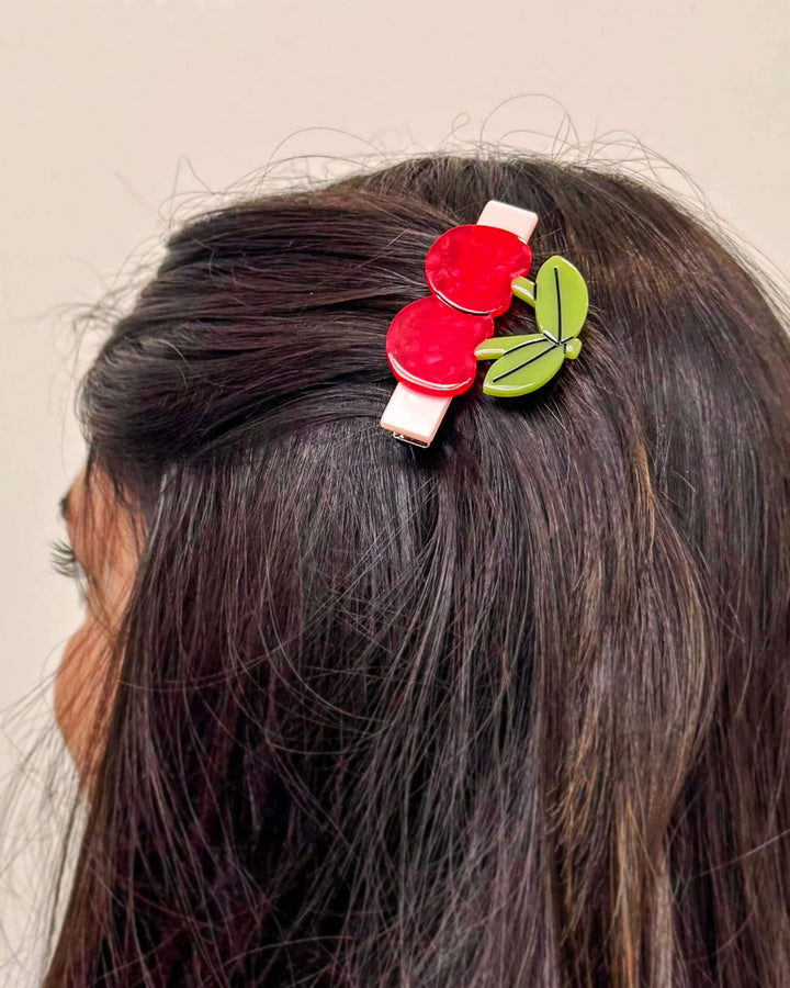 A fun and playful way to keep your hair up. Would pair great with a cherry red lip, and some retro flair!