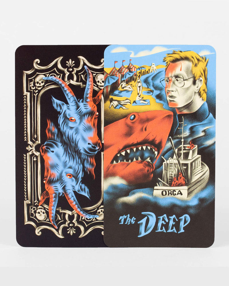 Chacun des 50 films soigneusement sélectionnés est représenté par une illustration évocatrice de style mini-affiche de film du célèbre artiste Ricardo Diseño, avec un thème oraculaire pour la divination appelé .