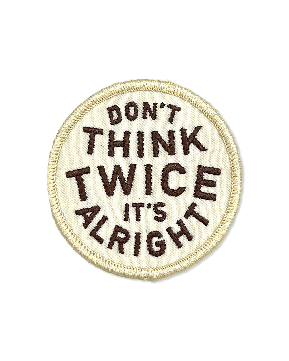 Don't think twice, it's alright. Stop overthinking! This simplistic retro-inspired patch is based in typography, saying all you need to without speaking.