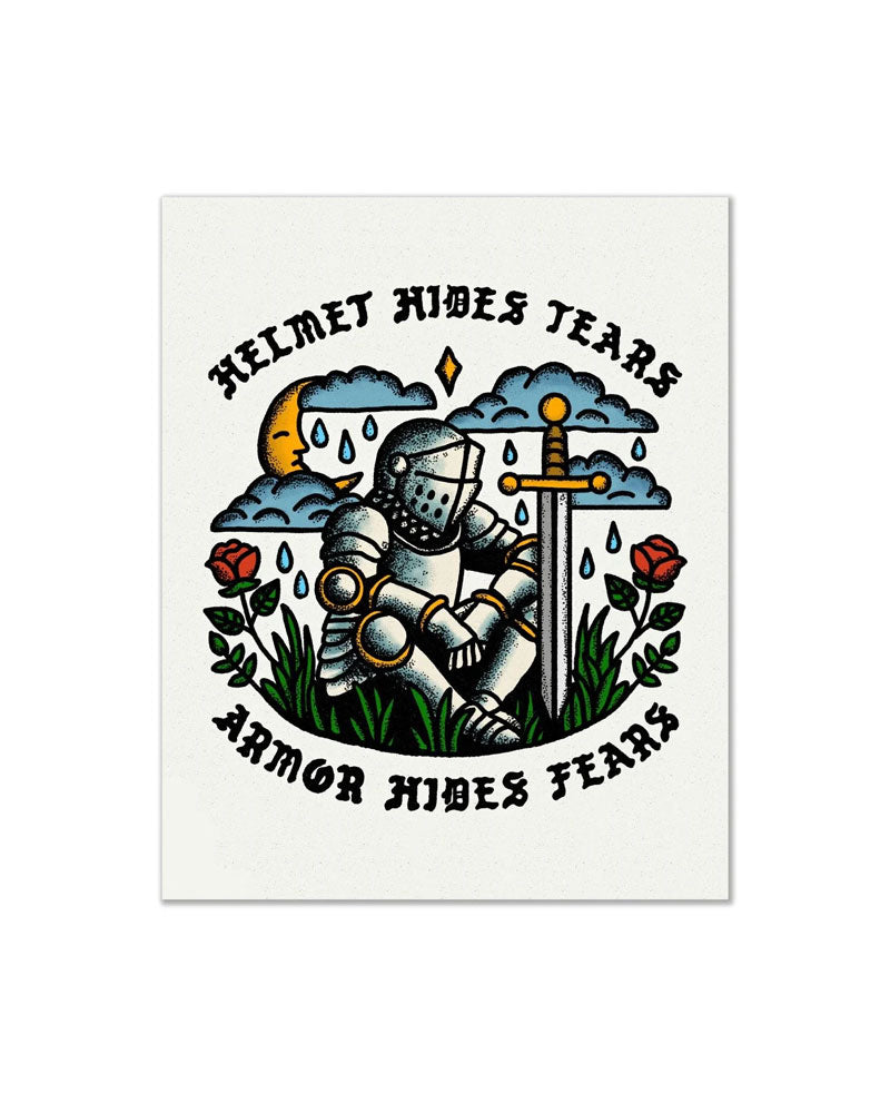 Le casque cache les larmes, l'armure cache les peurs Impression artistique (8" x 10")