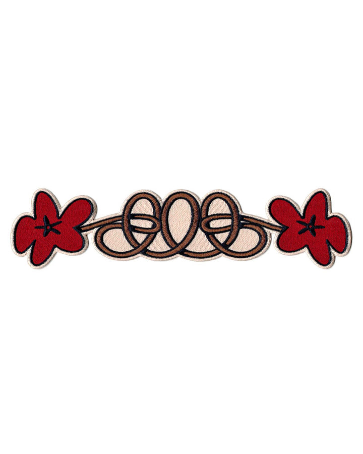 Deux fleurs rouges entrelacées. Feraient une belle pièce sur les épaules ou au bas d'une veste.
