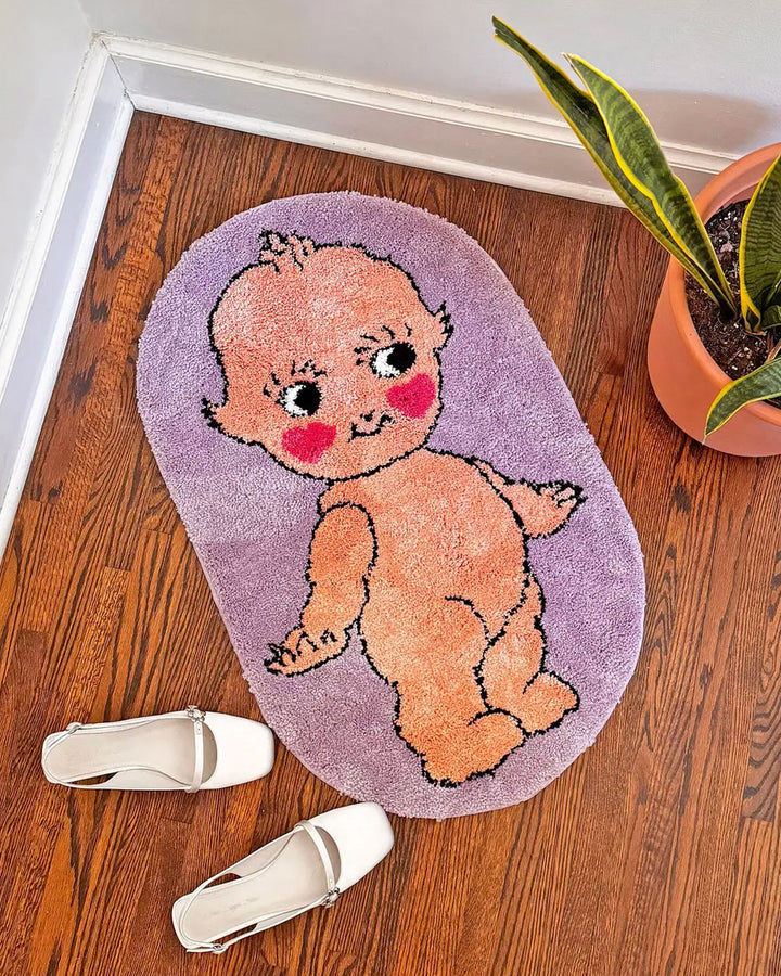 Ce tapis de sol à poils longs est d'une taille parfaite pour de nombreux espaces : entrée, salle de bain, ou même accroché au mur ou utilisé comme meuble d'appoint. Ce joli kewpie serait parfait dans votre maison ou votre appartement comme accent kitsch.