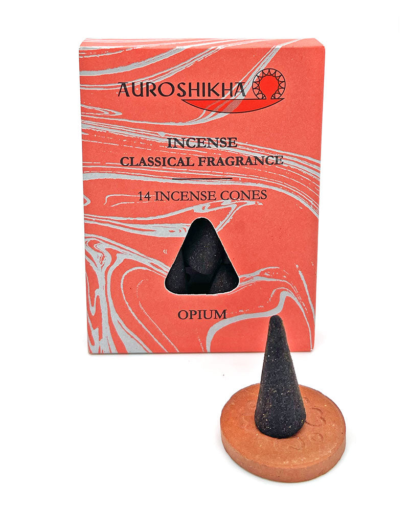 Cônes d'encens classiques inspirés de la nature. Ce parfum Opium est un parfum floral avec un mélange d'huiles de patchouli, d'agrumes et de citronnelle.