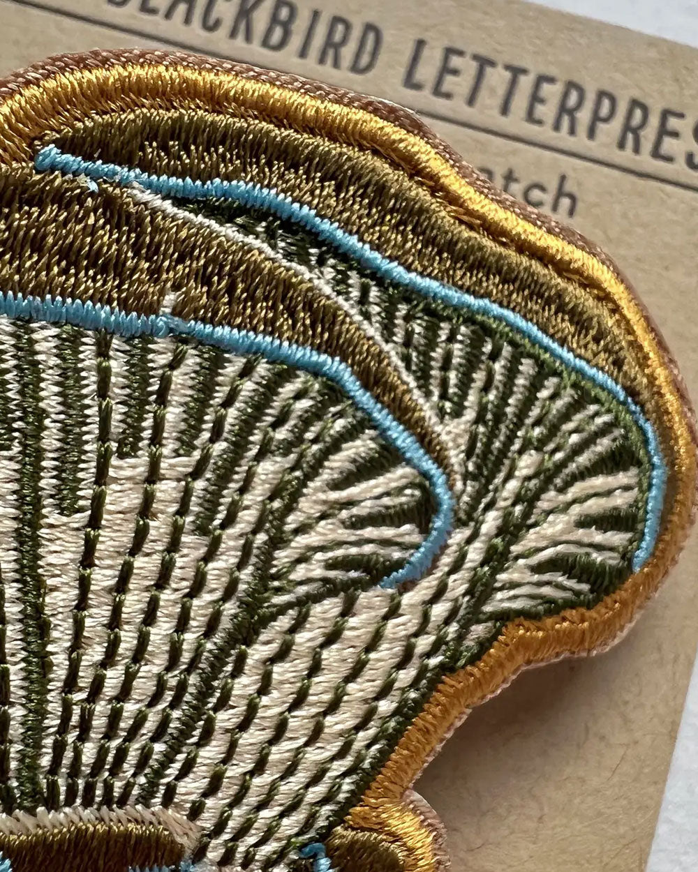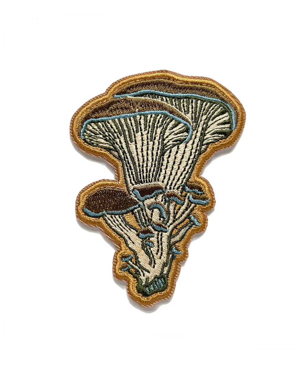 Un champ de pleurotes qui conviendra à tous les amoureux de la nature, à tous les sacs à dos ou à tous les sacs de pique-nique. Illustration avec des détails qui transparaissent dans le processus de broderie.
