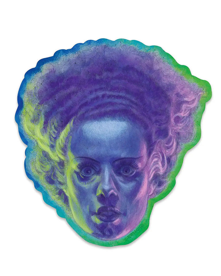 Climbing her way out of the graveyard, it is the first bride. Look Out! A beautifully-haunting portrait of a classic horror icon in vibrant hues.