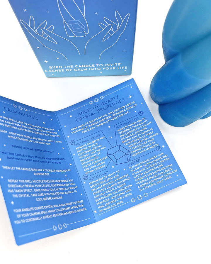 Burn the candle to reveal your aquamarine quartz crystal inside!