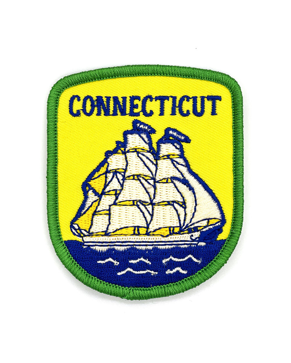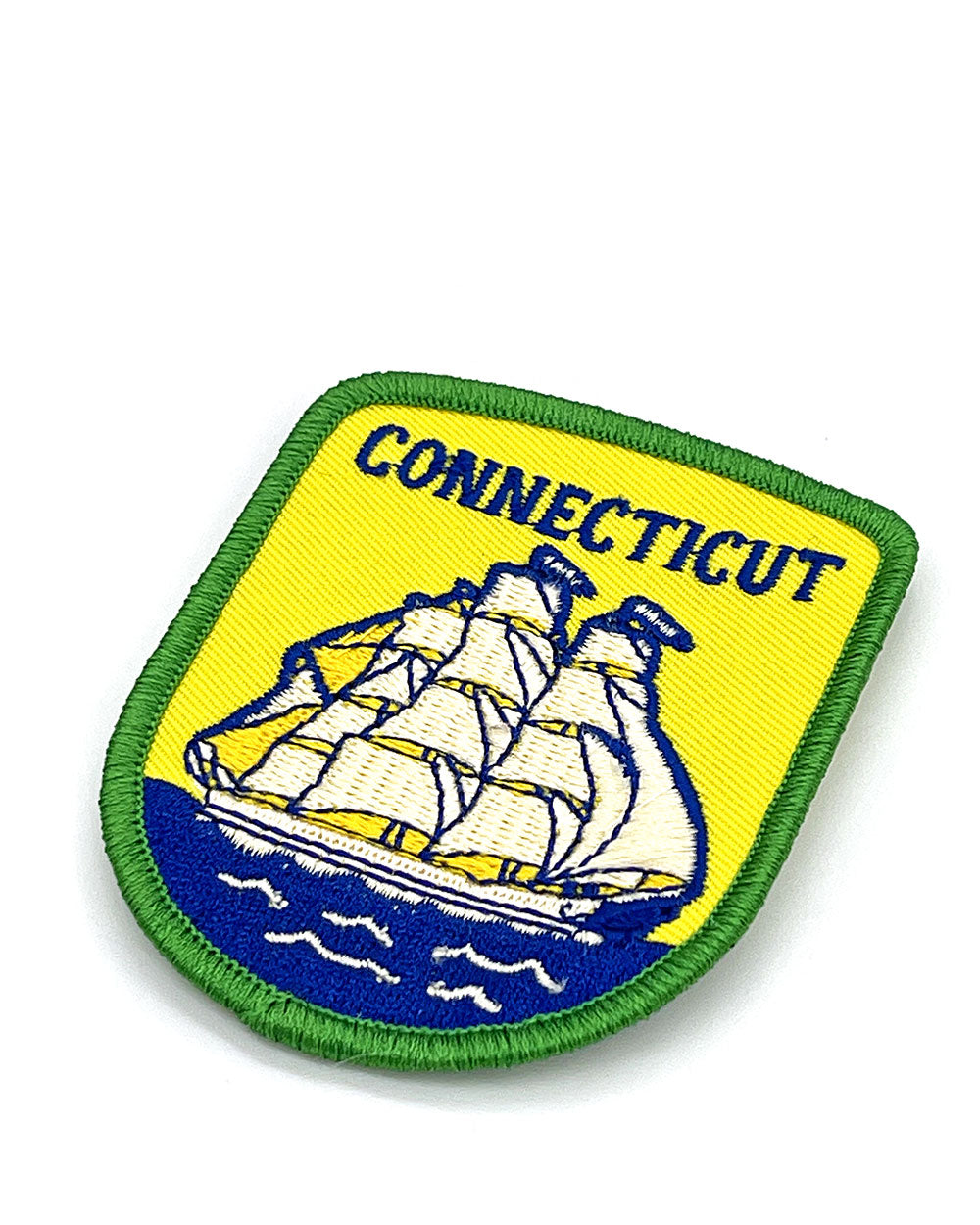 A large sailboat on it's way to the shores of Connecticut. This vintage-inspired patch is an ode to the Nutmeg State (that Strange Ways calls home!). Makes a great gift for any tourist to take home, or any local attach to their backpack or hat.