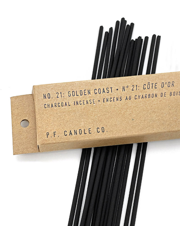 Charcoal-based incense sticks are fragranced in-house by P.F. Candle's Los Angeles team who've been operating for over 15 years. Incense quickly transforms a room as smoke slowly uplifts the space while signature scents linger for hours even after extinguishing.