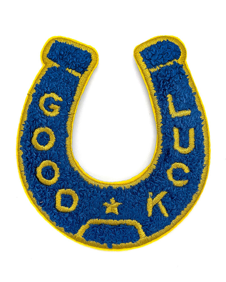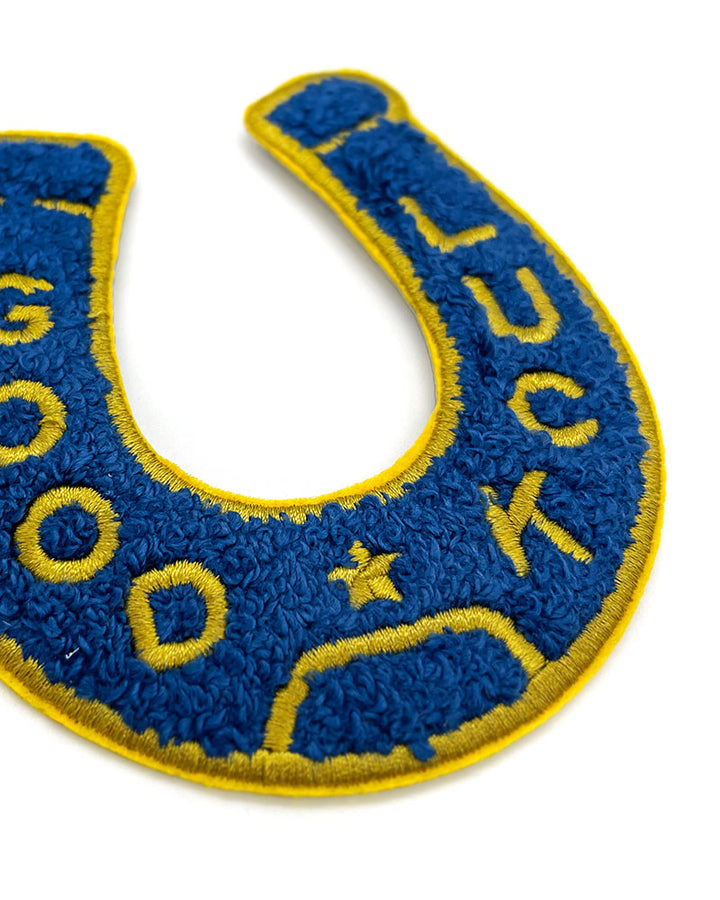 Good Luck Horseshoe Chenille Patch - Blue/Yellow