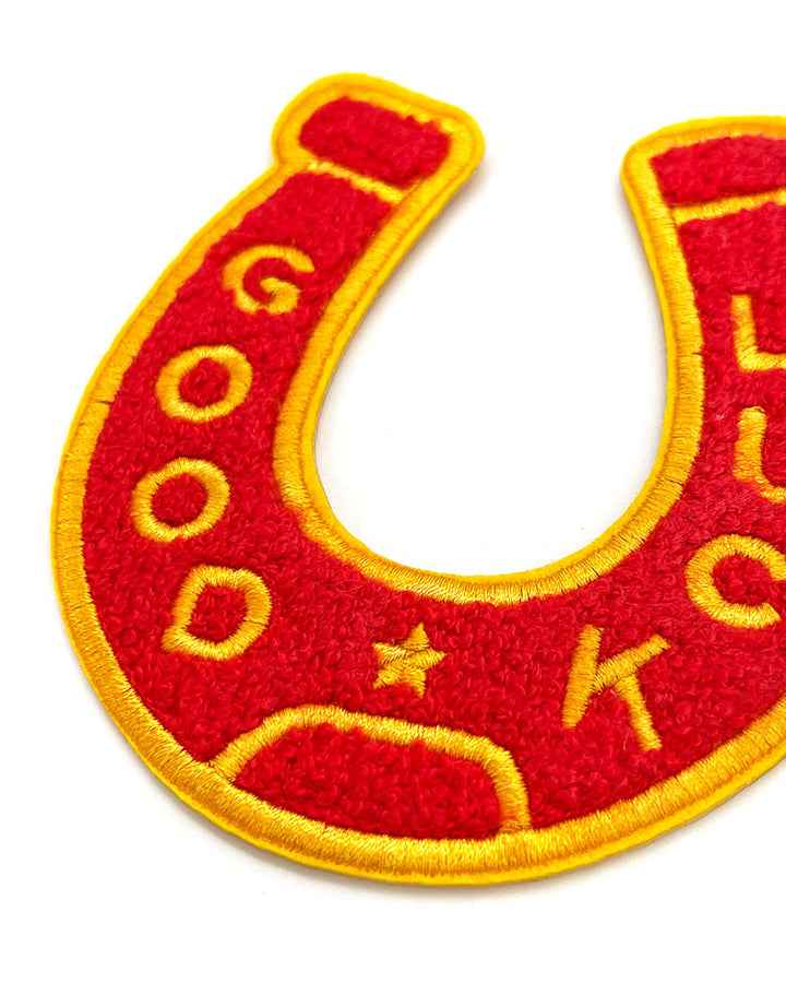 Good Luck Horseshoe Chenille Patch - Red/Yellow