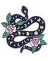 A snake moves in the night adorned by the moon phases and sparkling star. If you relate to something beautiful and dangerous that slinks in the night, this patch is for your jacket!
